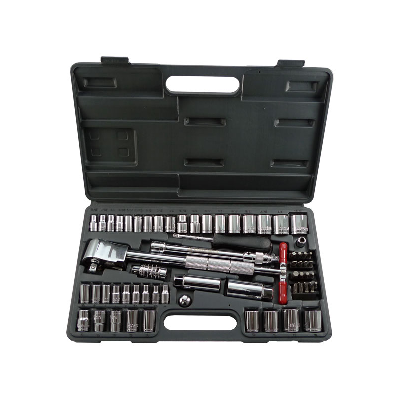65PCS SINDEWINDER SPEEDWREHCH PRO KIT (1pc #21300 3/8" sidewinder speedwrench, 1pc #22312 3/8"x190mm lockit socket extension, 1pc #23300 3/8" spring U-joint, 2pcs 3/8" spark plug sockets: 5/8"&13/16", 9pcs 3/8" 12pt metric sockets: 9, 10, 11, 12, 13, 14, 15, 17, 19mm, 9pcs 3/8" 12pt SAE sockets: 5/16", 3/8", 7/16", 1/2", 9/16", 5/8", 11/16", 3/4", 13/16", 9pcs 1/4" 6pt metric sockets: 4, 4.5, 5, 5.5, 6, 7, 8, 9, 10mm, 9pcs 1/4" SAE 6pt sockets: 3/16", 7/32", 1/4", 9/32", 5/16", 11/32", 3/8", 7/16", 1/2", 1pc double spinner w/snap-on handle, 1pc 3/8"(F)x1/4"(M) adaptor, 4pcs (-) bits: 4mmx25L, 6mmx25L, 7mmx25L, 5.5mmx25L, 4pcs (+) bits: ph0x25L, ph1x25L, ph2x25L, ph3x25L, 4pcs hex bits: 4mmx25L, 5mmx25L, 6mmx25L, 8mmx25L, 8pcs torx bits: T8x25L, T10x25L, T15x25L, T20x25L, T25x25L, T27x25L, T30x25L, T40x25L, 1pc 1/4"x1/4" adaptor, 1pc blow case)